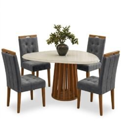 Mesa Salinas 160 (Tampo Londres c/vidro) Cinamomo/Off White com 6 Cadeiras Las Vegas Veludo Cinza Grafite 10 – CEL MÓVEIS + OURO DECOR