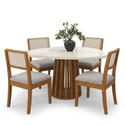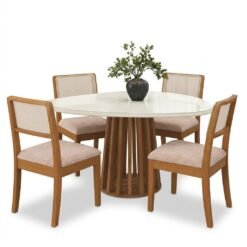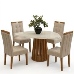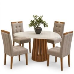 Mesa Salinas 160 (Tampo Londres c/vidro) Cinamomo/Off White com 6 Cadeiras Las Vegas Veludo Marrom 17 – CEL MÓVEIS + OURO DECOR