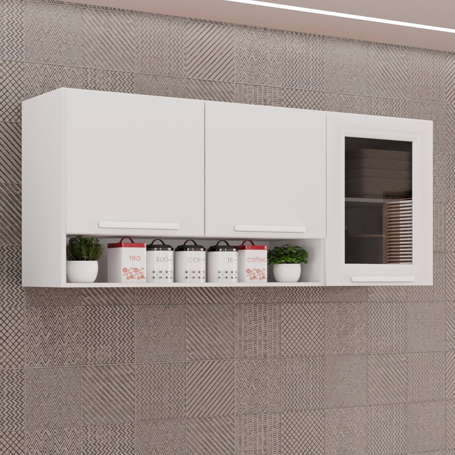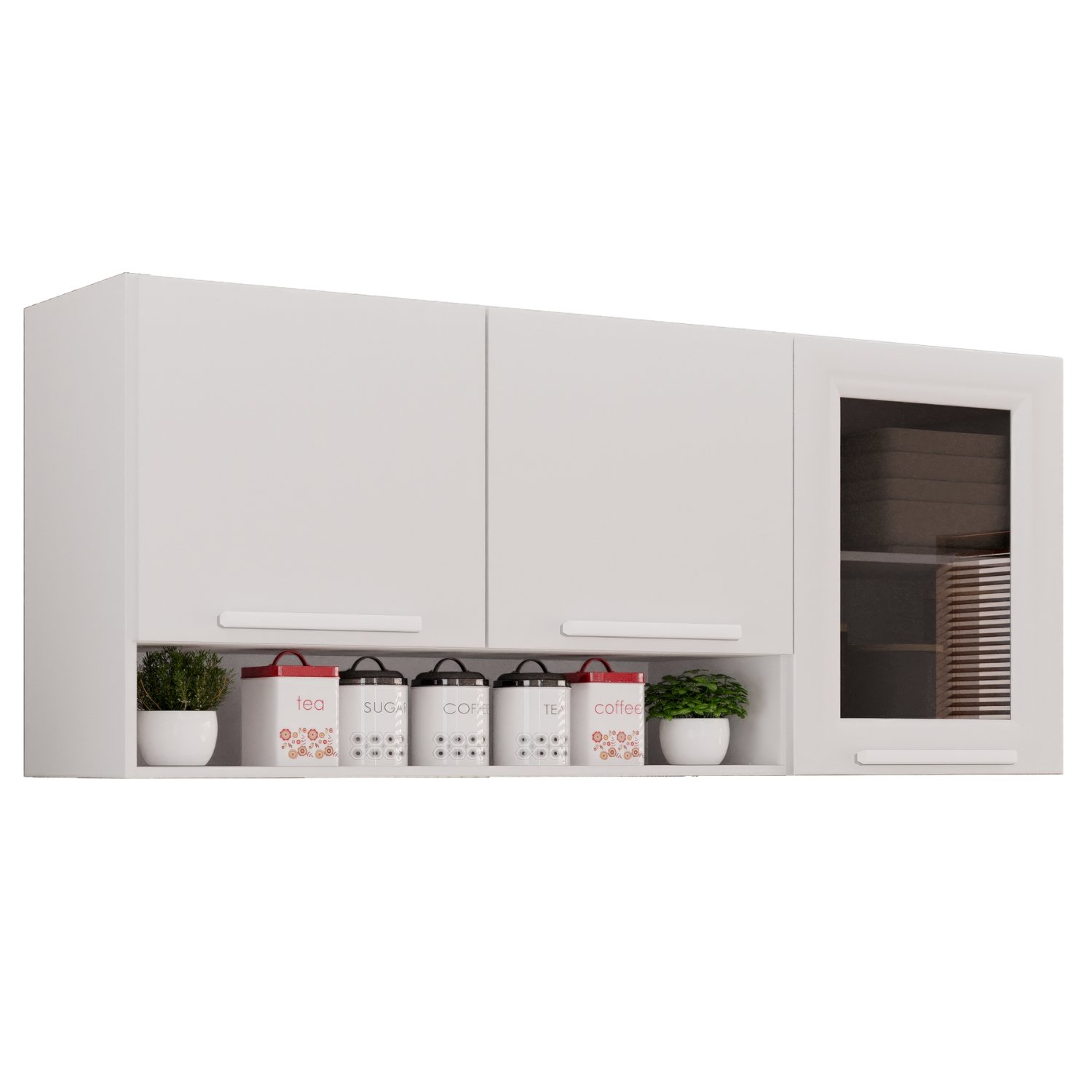Armário Aéreo 3 portas Vidro Fumê New Valência Branco – SALLÊTO