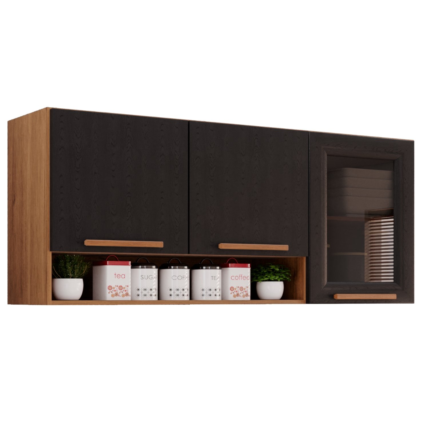 Armário Aéreo 3 portas Vidro Fumê New Valência Cinamomo/Preto – SALLÊTO