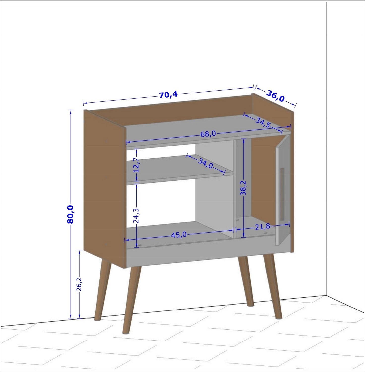 – Pés em madeira maciça com feltro anti-risco com 26,2 cm