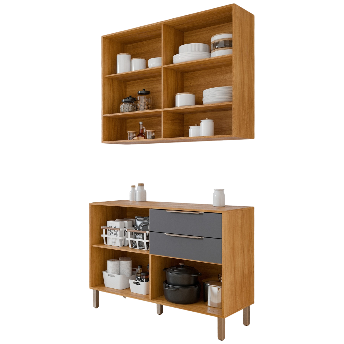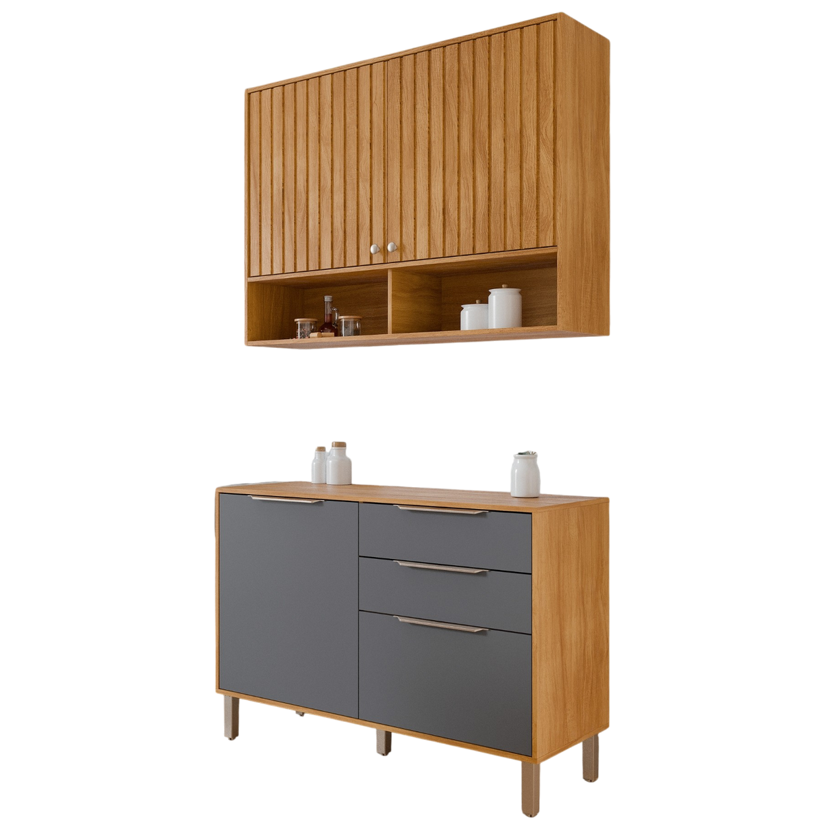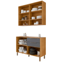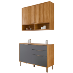Armário Aéreo 2 Portas + Balcão Divina 1,20 m Cinamomo/Titanium – MGM MÓVEIS