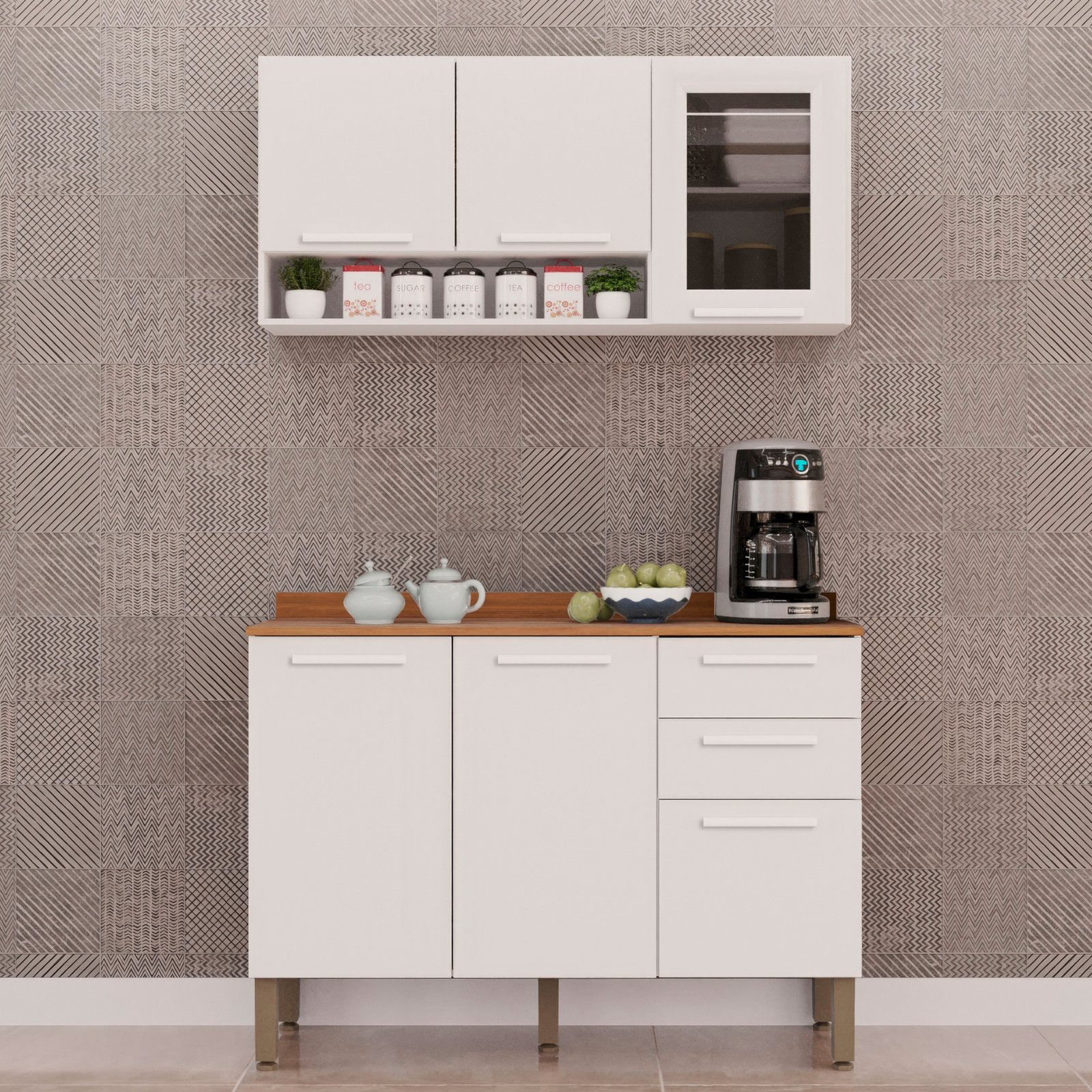 Armário Aéreo Vidro Fumê + Balcão New Valência Branco – SALLÊTO