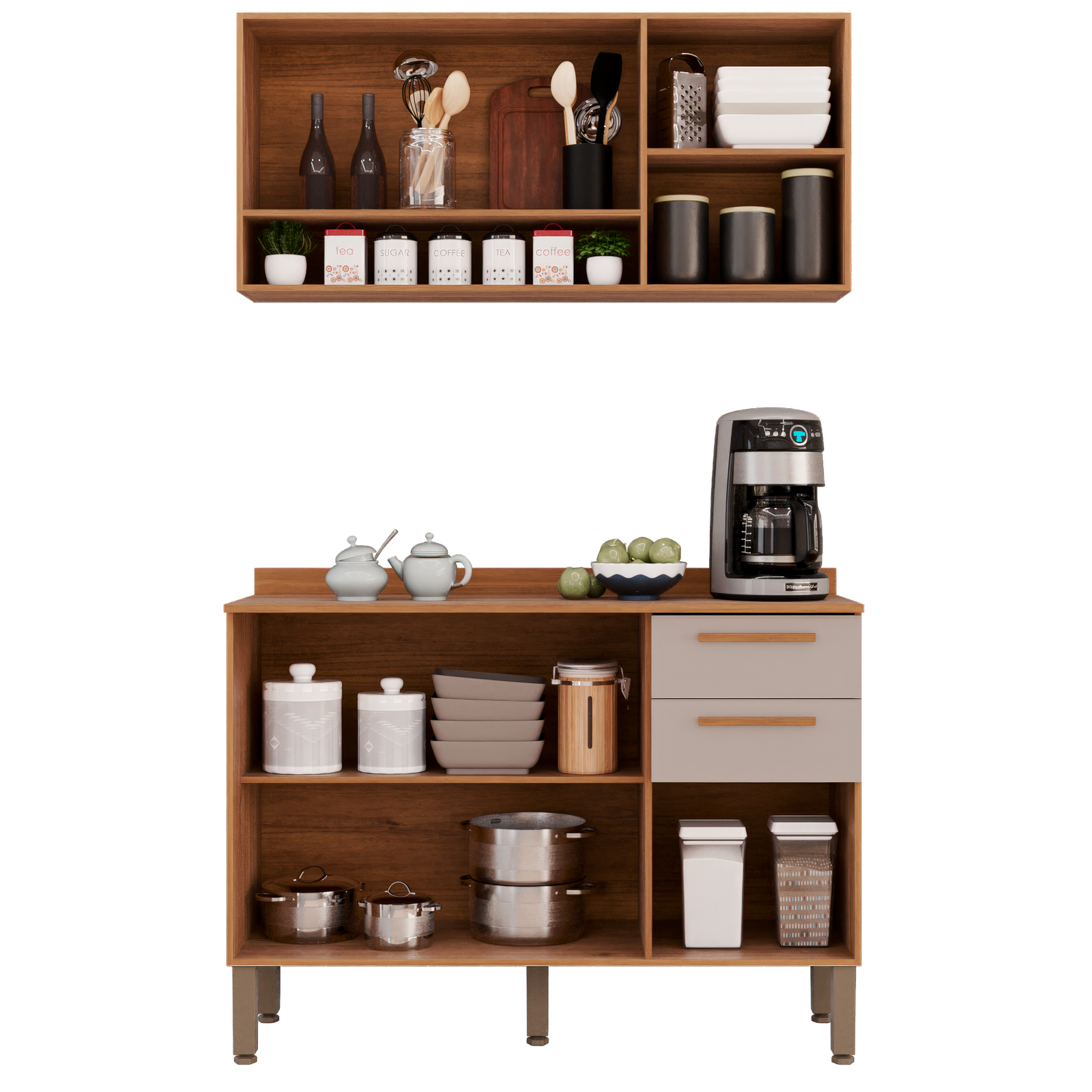 Armário Aéreo Vidro Fumê + Balcão New Valência Cinamomo/Off White – SALLÊTO