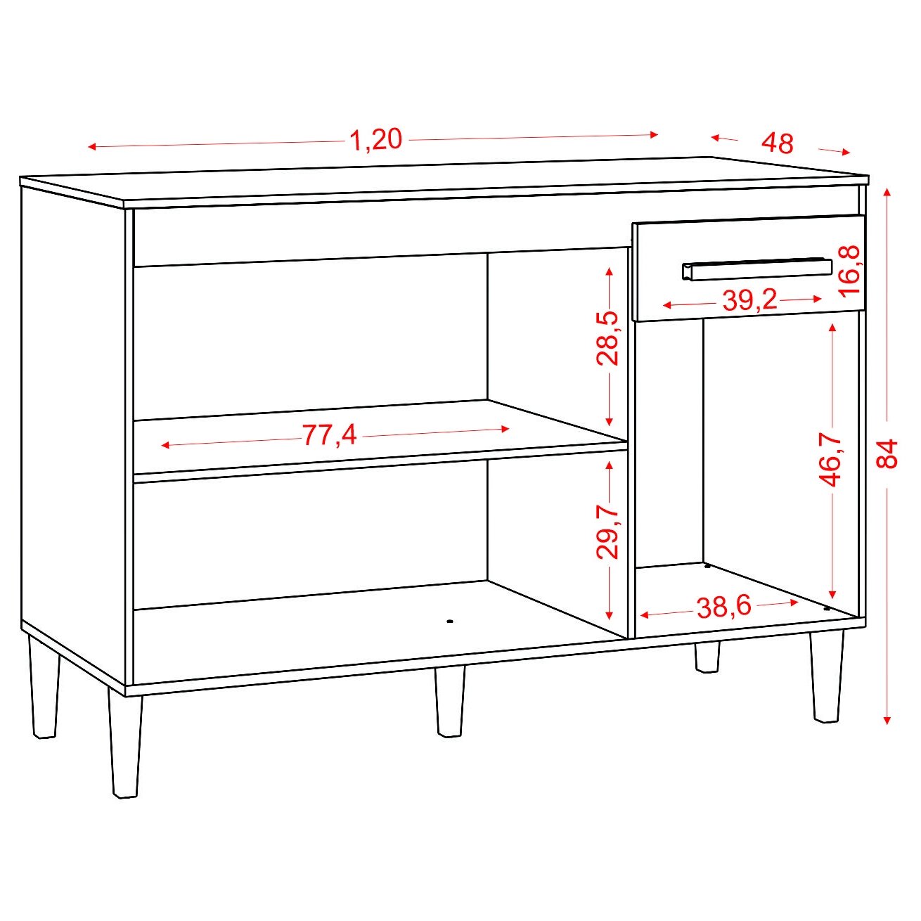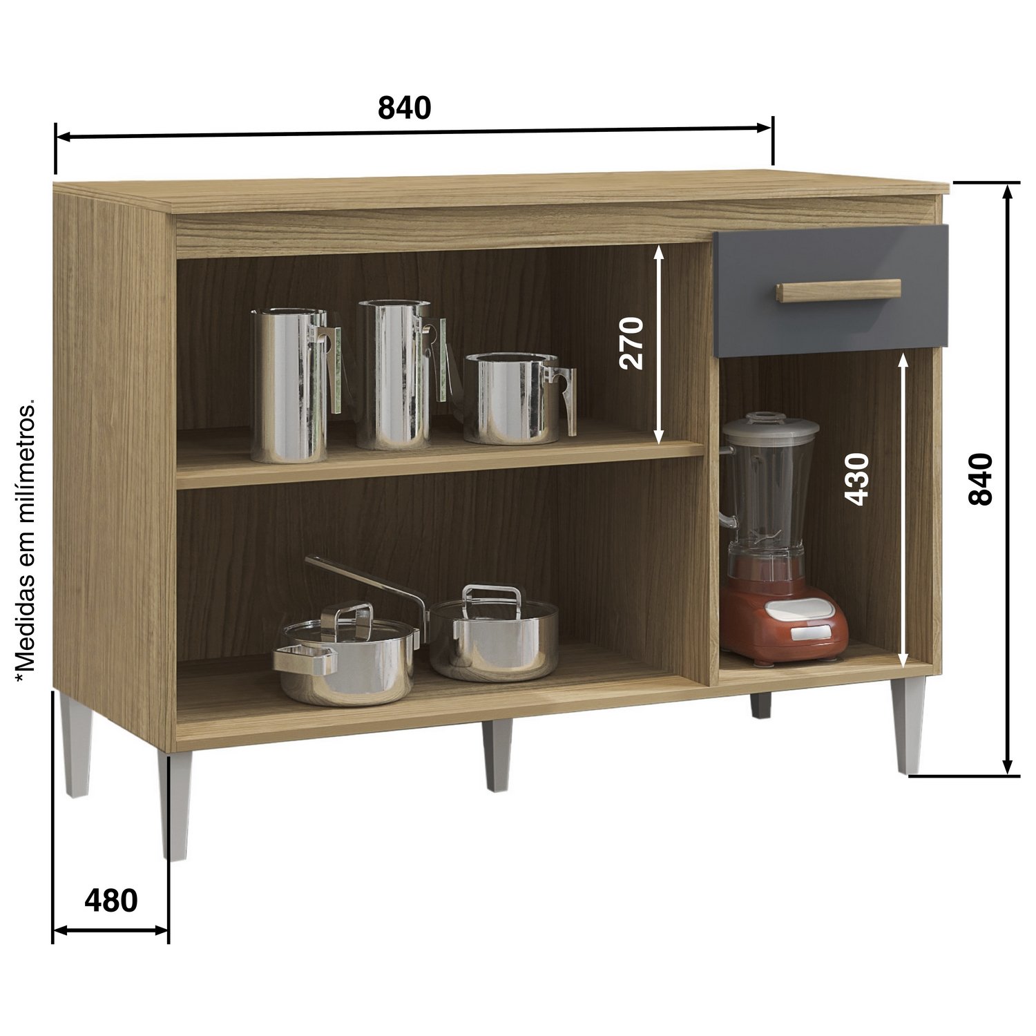 Balcão 3P1G Vitória/Naiomi Atacama/Grafite – ARAMÓVEIS