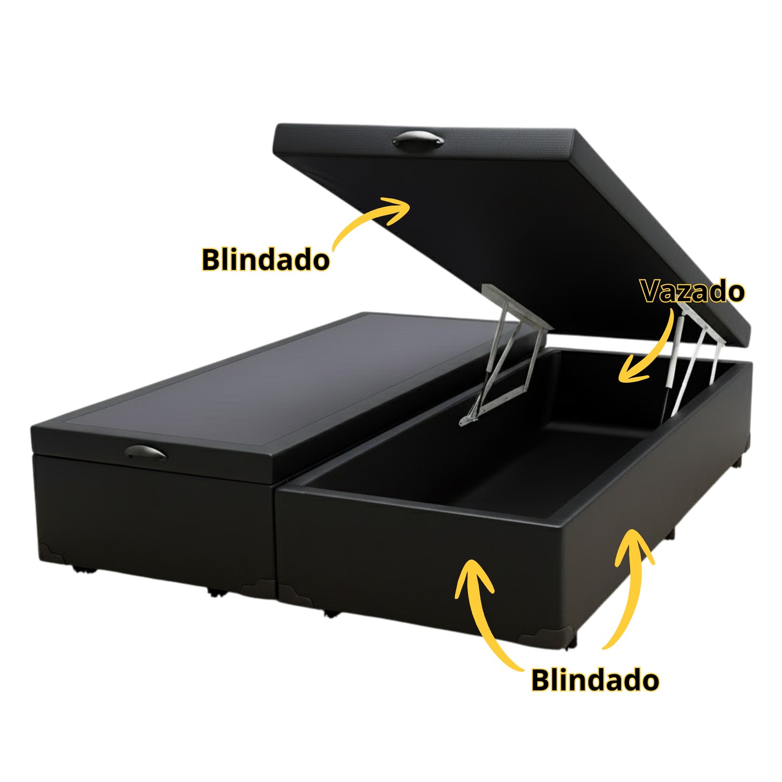 Base Box Queen Baú Corino Preto – ALTO NÍVEL CAMAS E COLCHÕES
