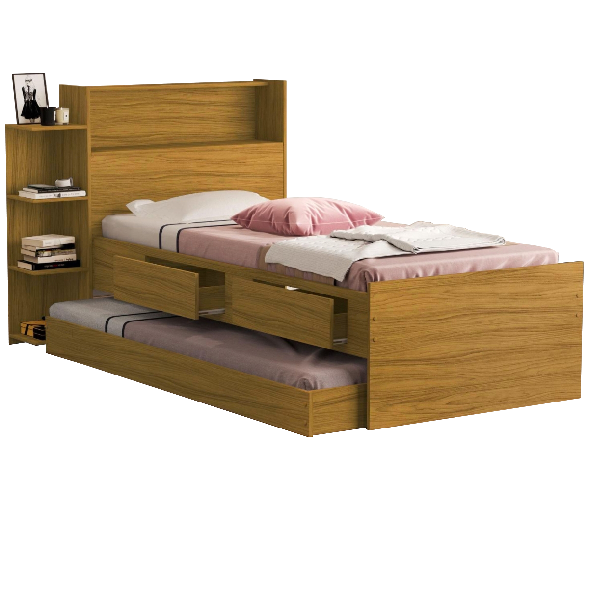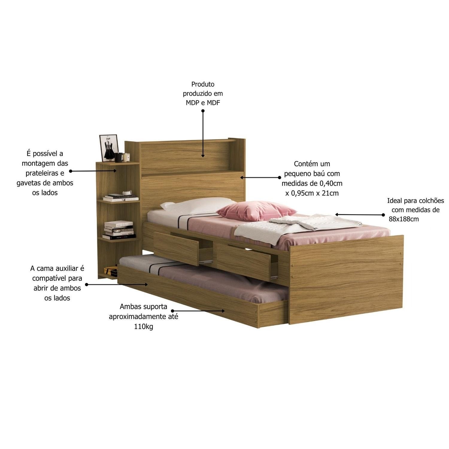 Cama Solteiro Baú Isa + Auxiliar Mili Nature – MADEC/VJ MÓVEIS