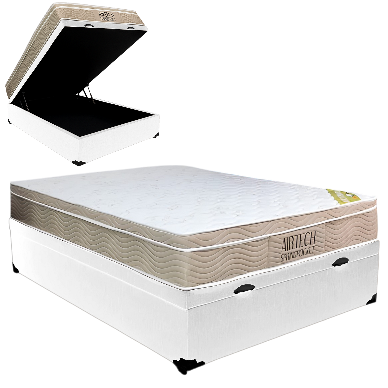 Colchão Casal Airtech Springpocket + Base Box Baú Branco – ORTOBOM + AVALON COLCHÕES