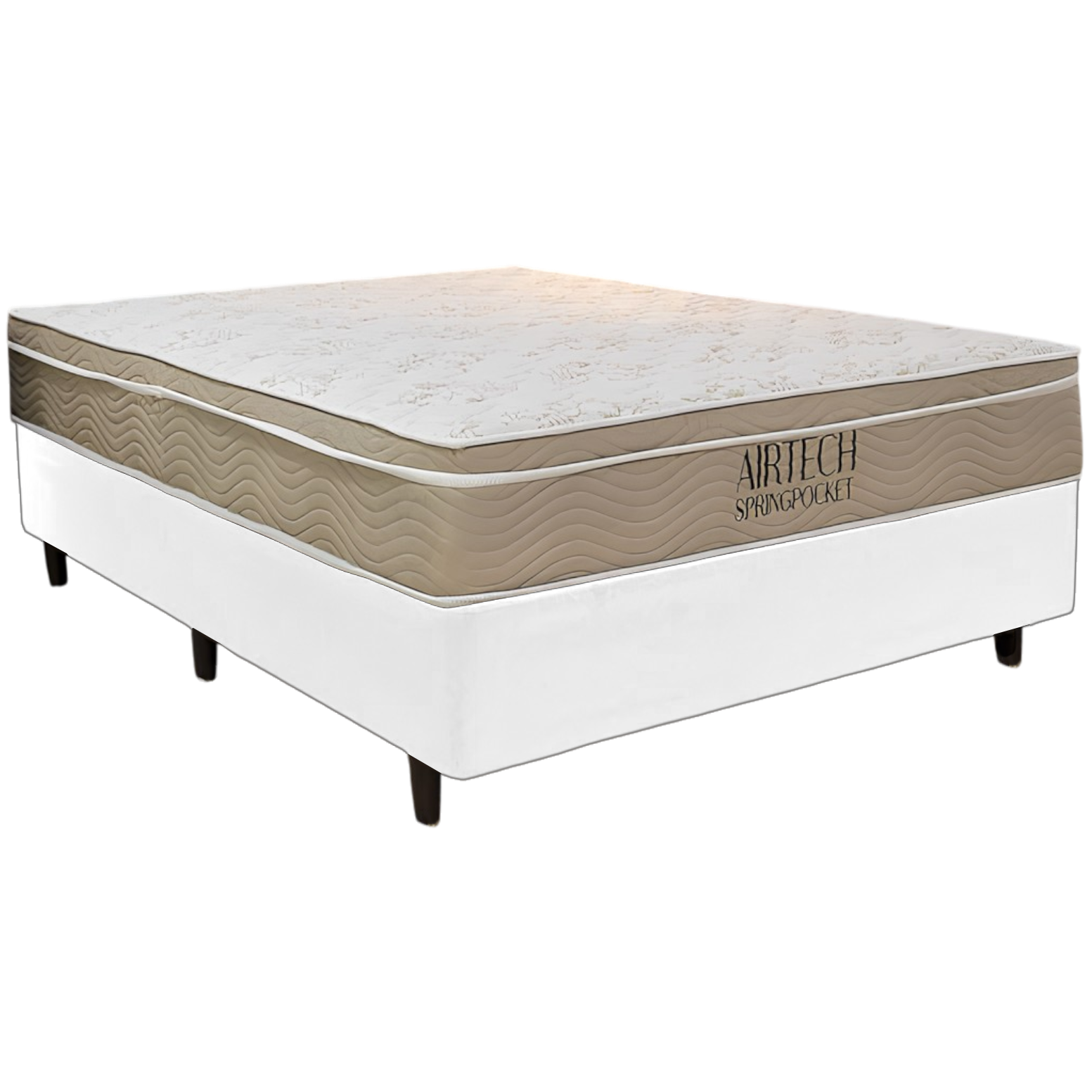 Colchão Casal Airtech Springpocket + Base Box Simples Corino Branco – ORTOBOM + AVALON COLCHÕES