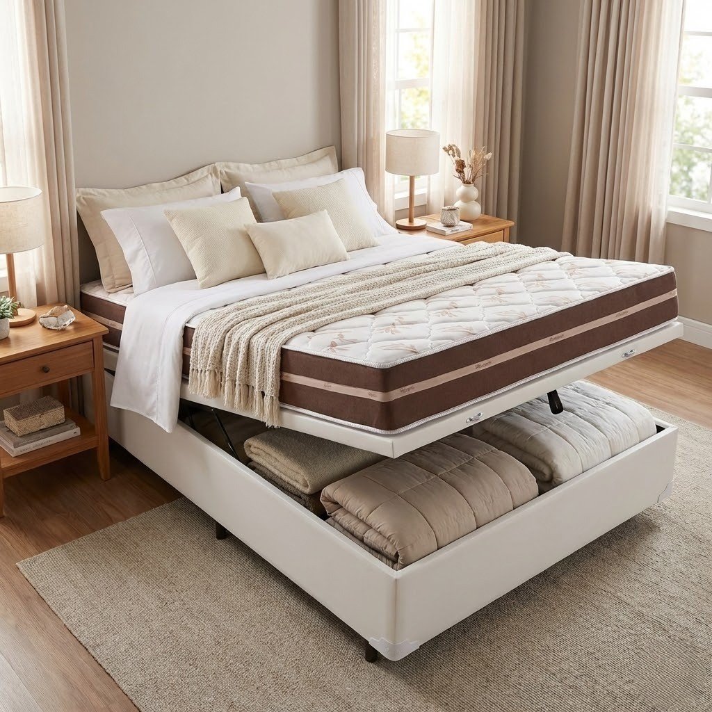 Colchão Casal Classic 22 cm AGD70 Molas Ensacadas + Base Baú Corino Branco – ANJOS COLCHÕES + BIOSTAR
