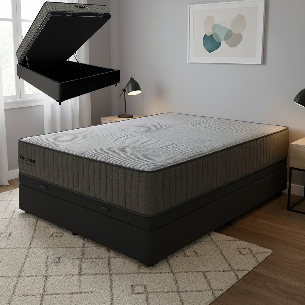 Colchão Casal Exclusive Foam + Base Box Baú Preto – ORTOBOM + BIOSTAR