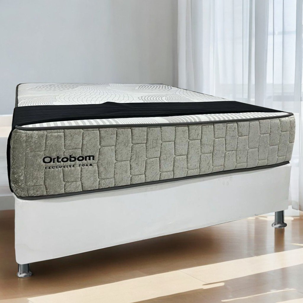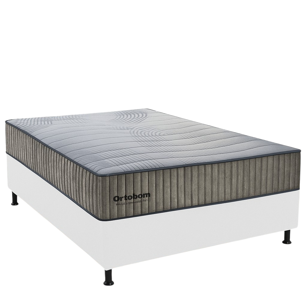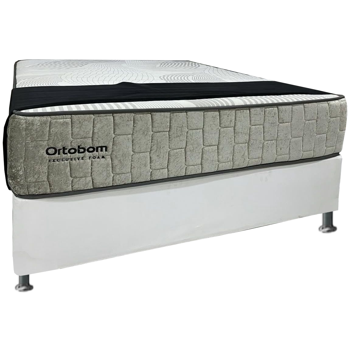 Colchão Casal Exclusive Foam HR 33 + Base Box Simples Corino Branco – ORTOBOM + ALTO NÍVEL CAMAS E COLCHÕES