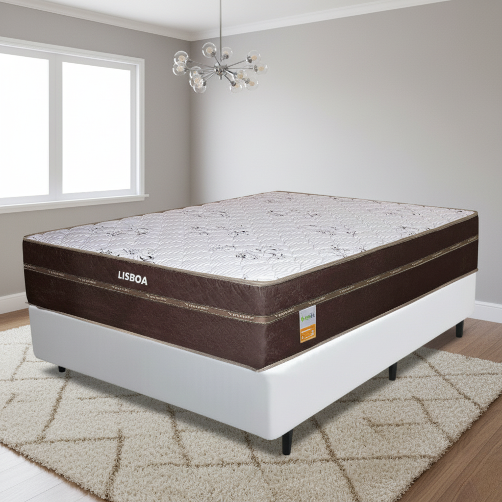 Colchão Casal Lisboa 24 cm D28 + Base Box Simples Corino Branco – ECOTEC + BIOSTAR