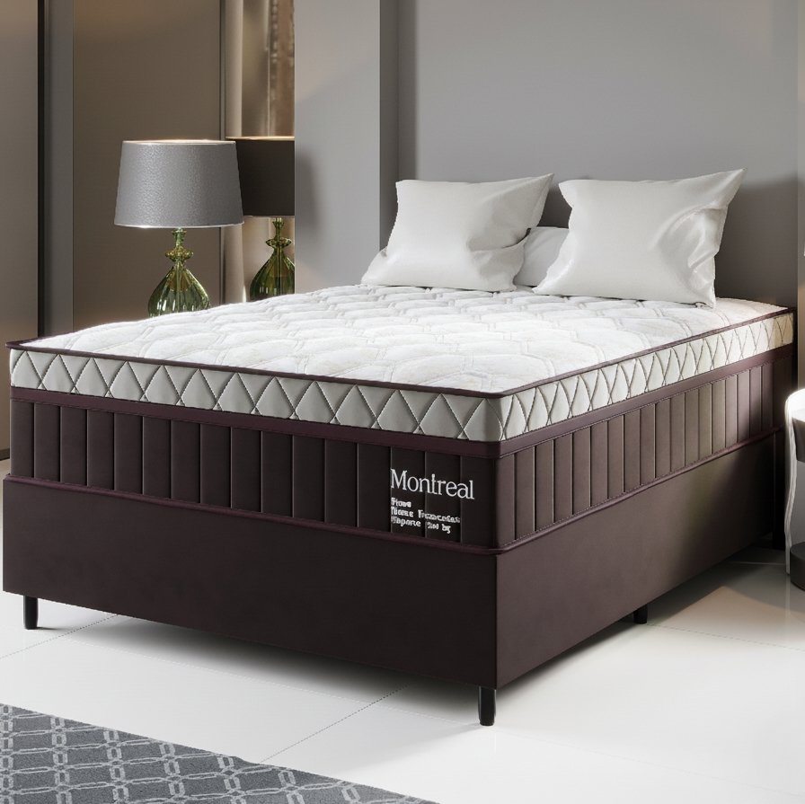 Colchão Casal Montreal D28 + Base Box Simples Corino Marrom – VIERO MÓVEIS + ALTO NÍVEL CAMAS E COLCHÕES