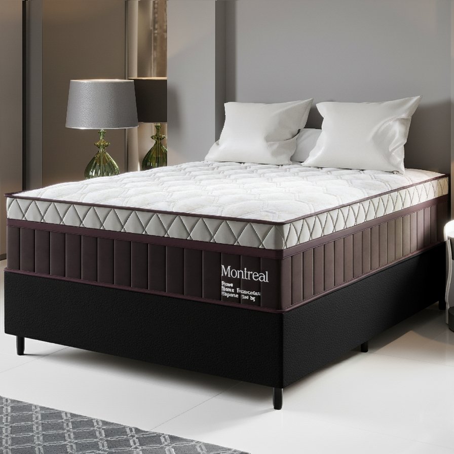 Colchão Casal Montreal D28 Base Box Simples Corino Preto – VIERO MÓVEIS + BIOSTAR