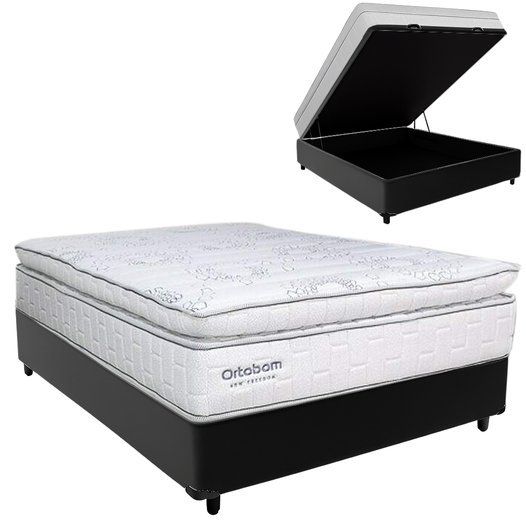 Colchão Casal New Freedom 32 cm D33 Molas Ensacadas + Base Baú Corino Preto – ORTOBOM + BIOSTAR