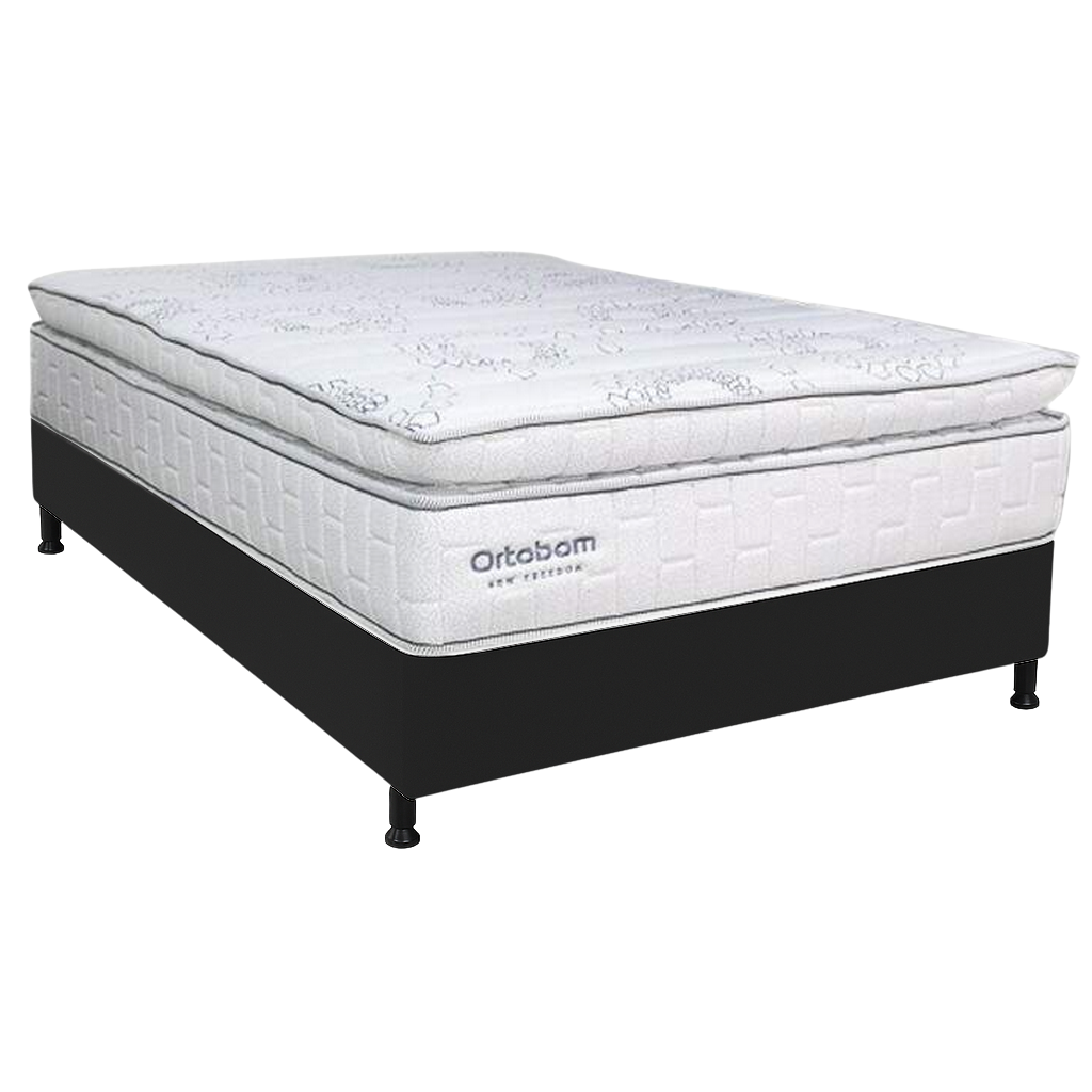 Colchão Casal New Freedom + Base Box Simples Corino Preto – ORTOBOM + BIOSTAR