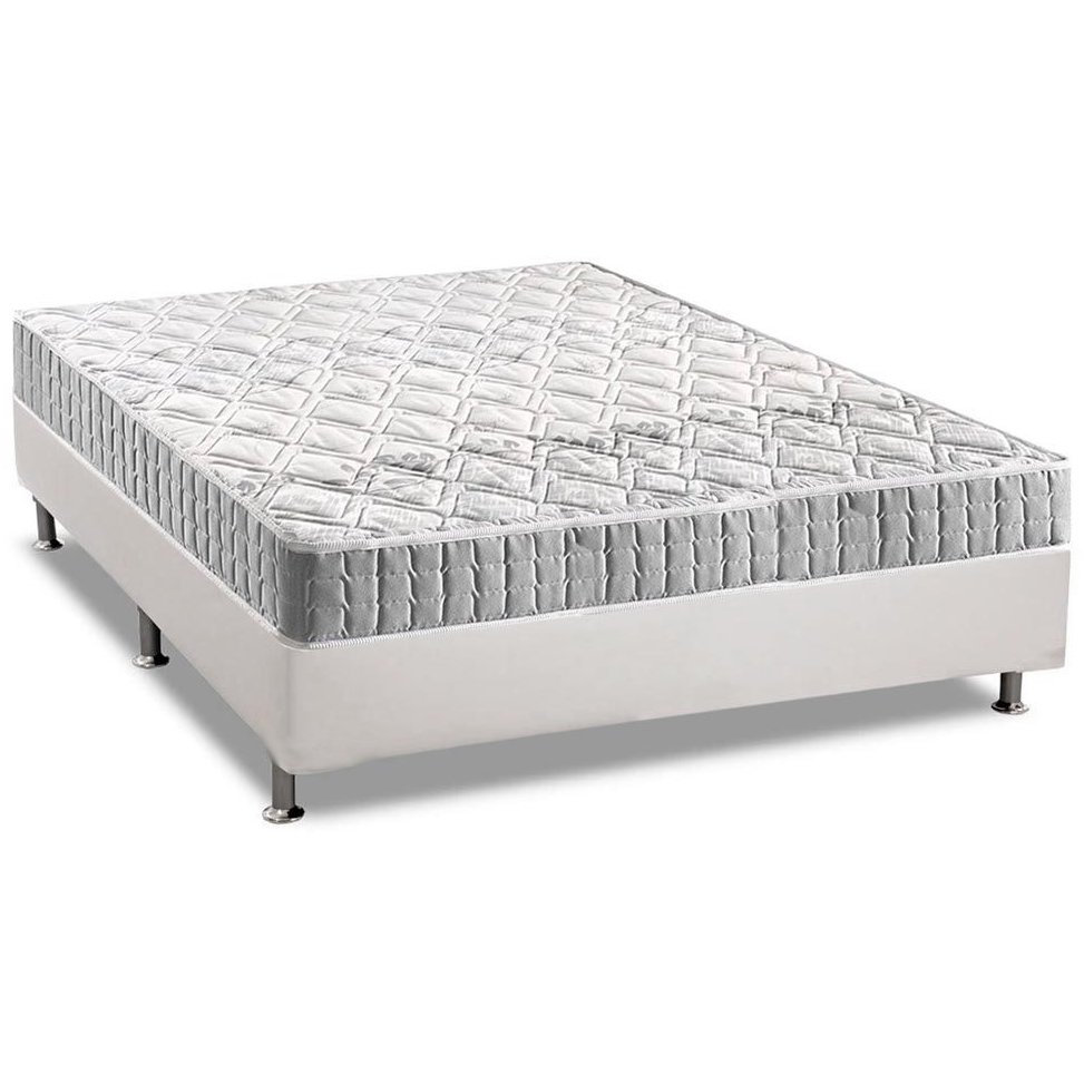 Colchão Casal Orthosono + Base Box Simples Corino Branco – ANJOS COLCHÕES + BIOSTAR