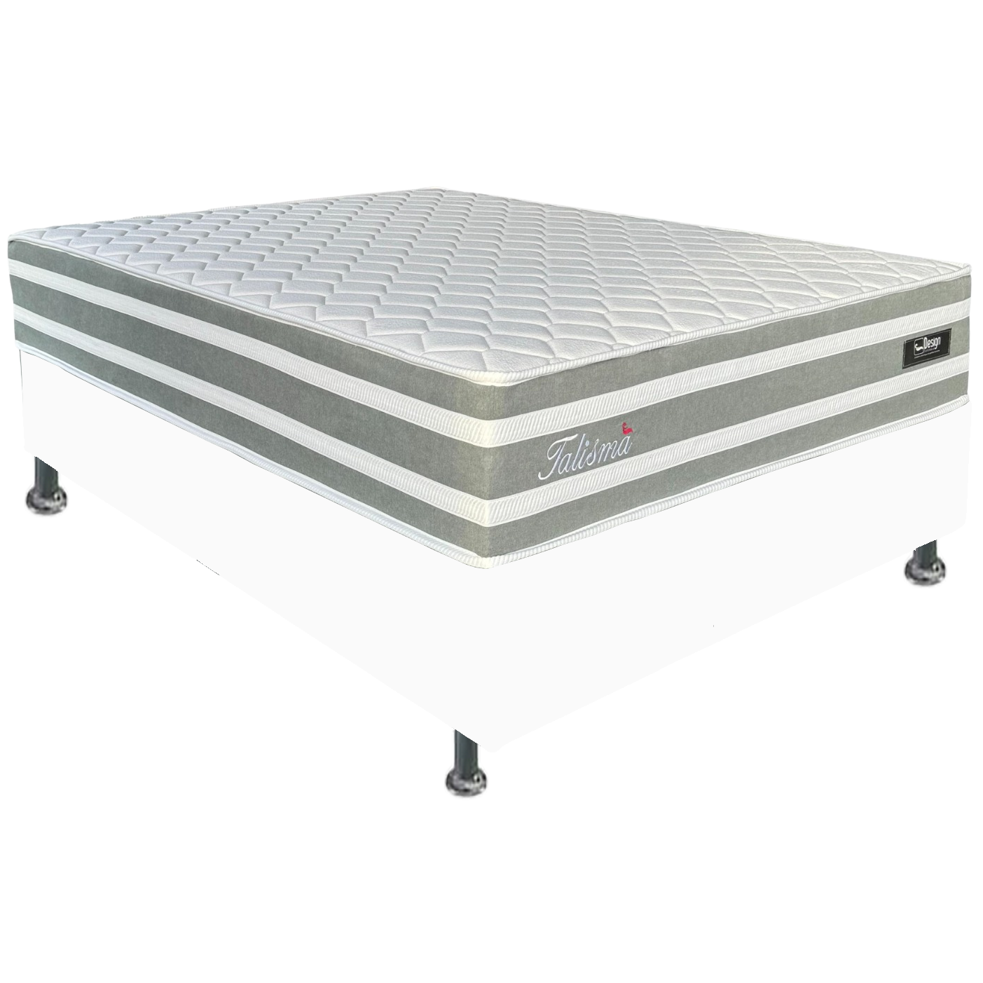 Colchão Casal Talismã D28 + Base Box Simples Corino Branco – DESIGN COLCHÕES + BIOSTAR