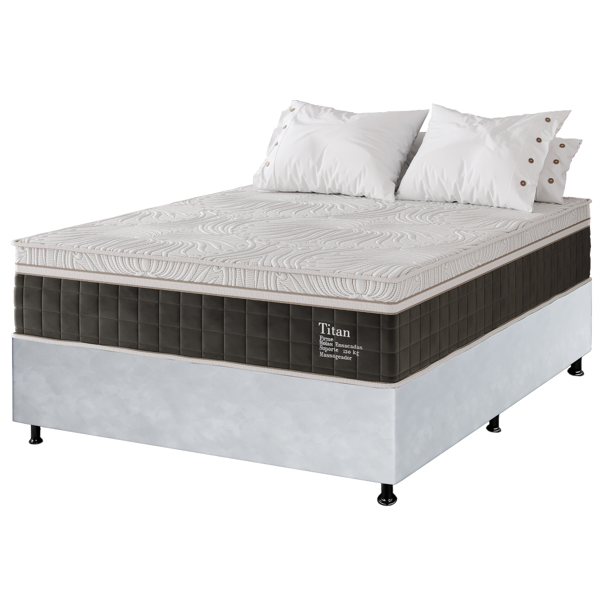 Colchão Casal Terapêutico Massageador Titan D28 + Base Box Simples Corino Branco – VIERO MÓVEIS + BIOSTAR