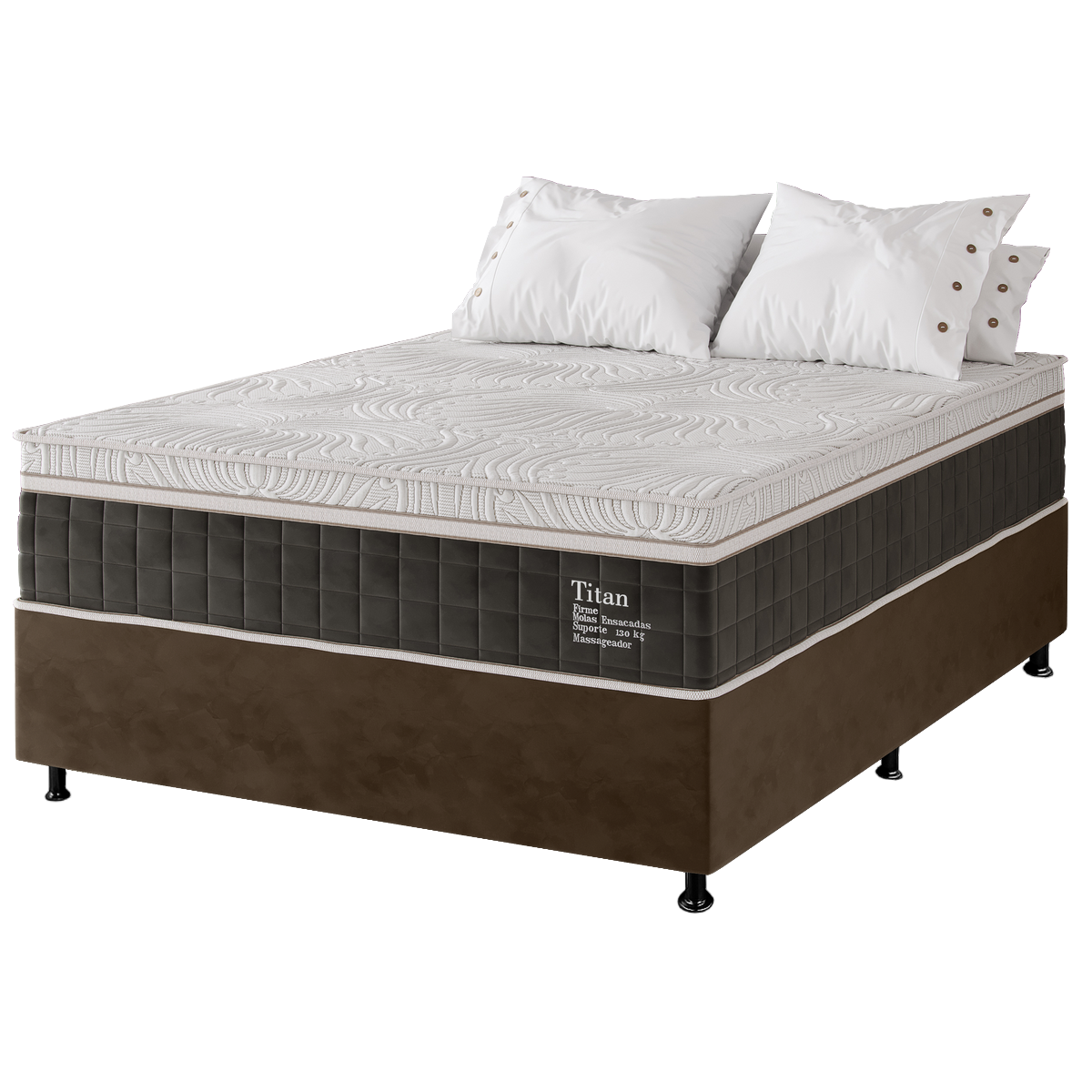 Colchão Casal Terapêutico Massageador Titan D28 + Base Box Simples Corino Marrom – VIERO MÓVEIS + ALTO NÍVEL CAMAS E COLCHÕES