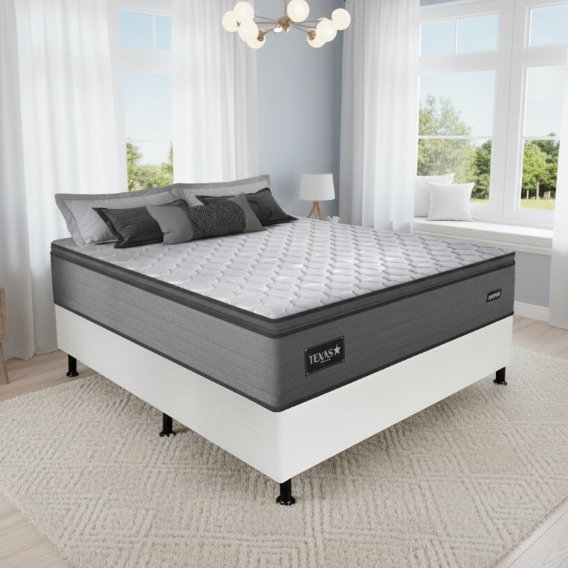 Colchão Casal Texas D28 + Base Box Simples Corino Branco – GAZIN COLCHÕES + BIOSTAR