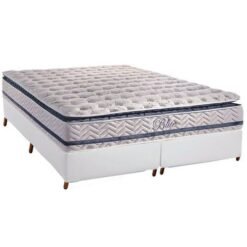 Colchão Queen Blue D33 + Base Box Simples Corino Branco – PAROPAS + ALTO NÍVEL CAMAS E COLCHÕES