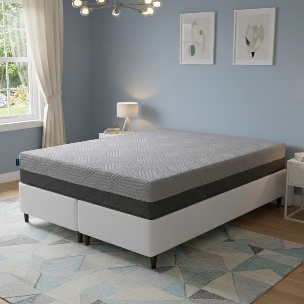 Colchão Queen D28/D40 Fit Visco + Base Box Simples Corino Branco – UMAFLEX + BIOSTAR