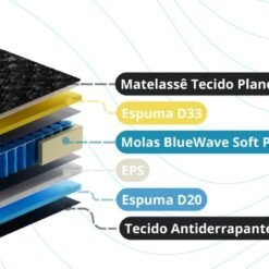 – Tampo em poliéster matelassê + fibra siliconada