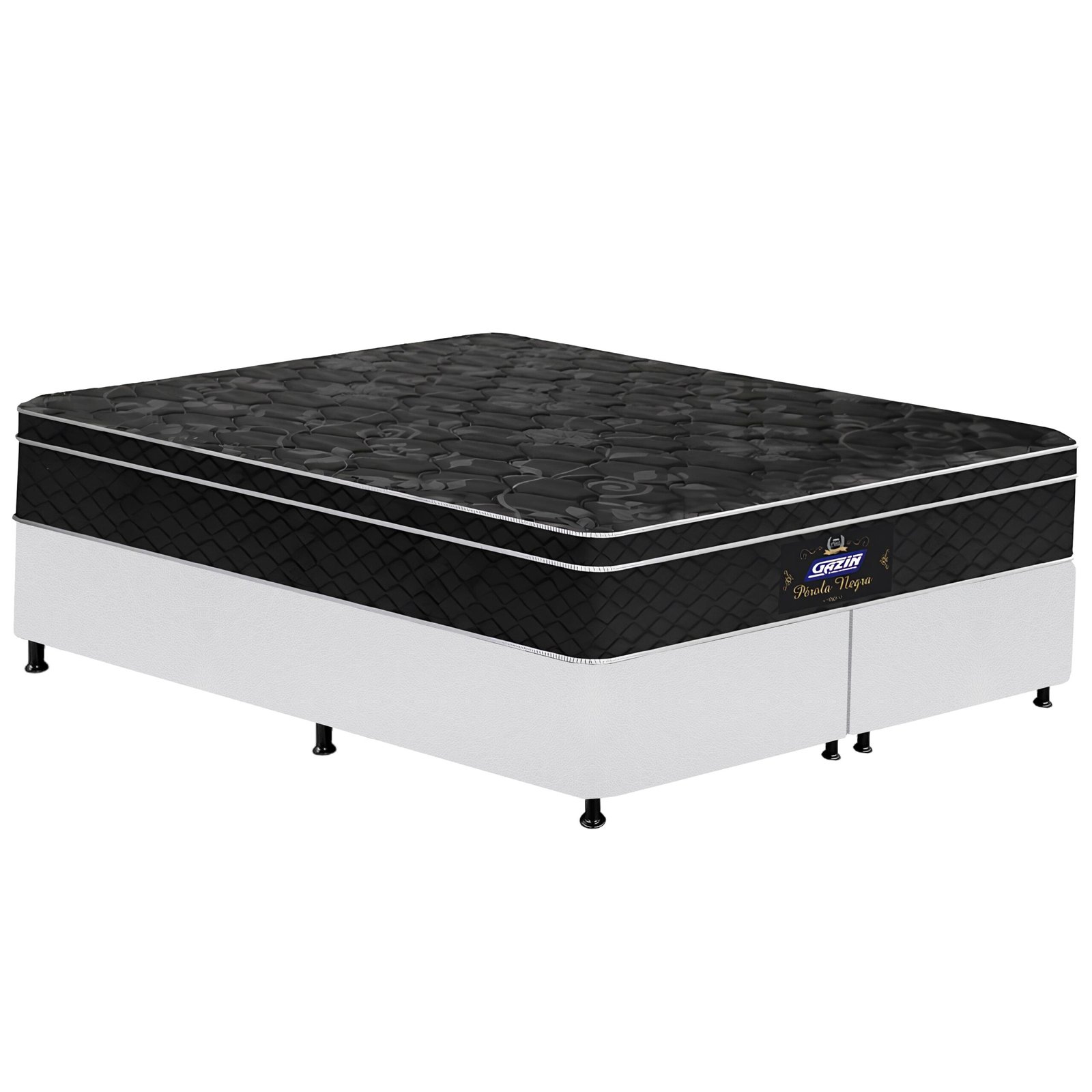 Colchão Queen Pérola Negra D33 + Base Box Simples Corino Branco – GAZIN COLCHÕES + ALTO NÍVEL CAMAS E COLCHÕES