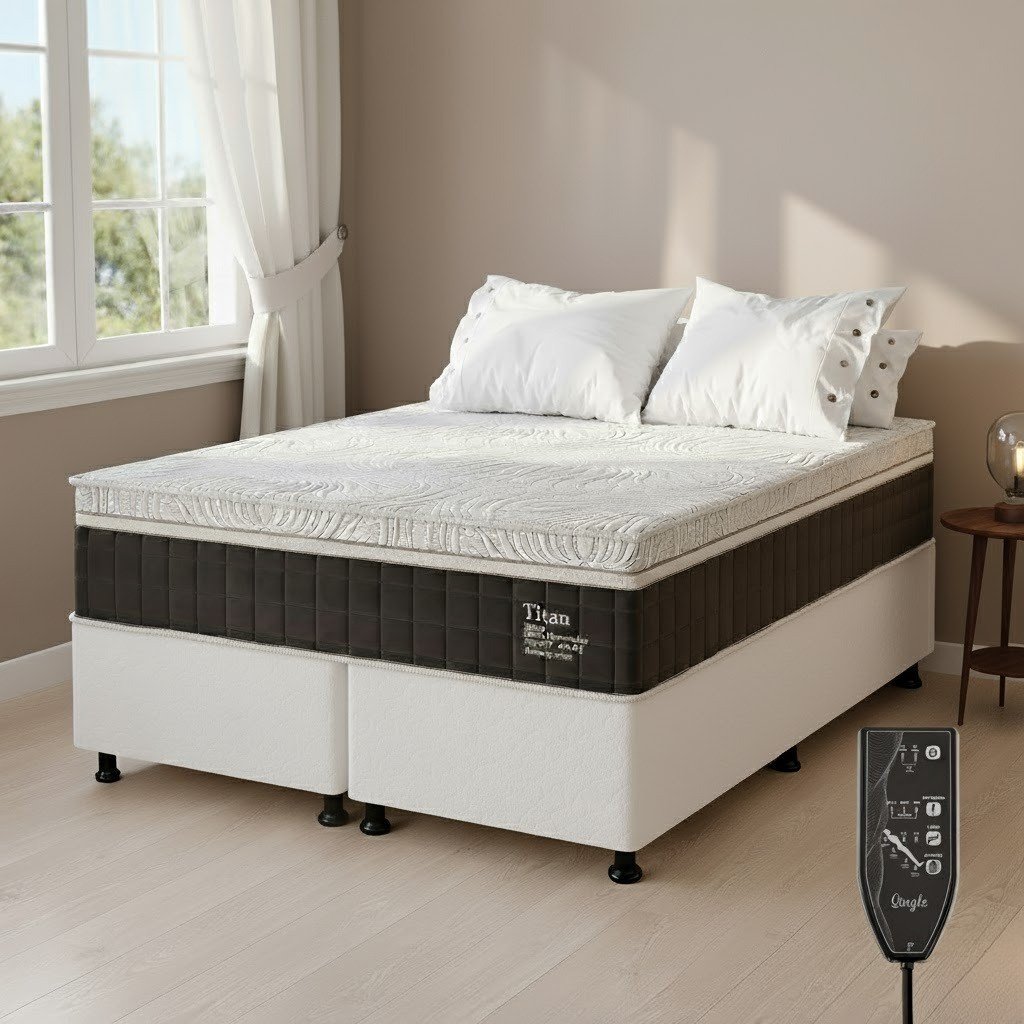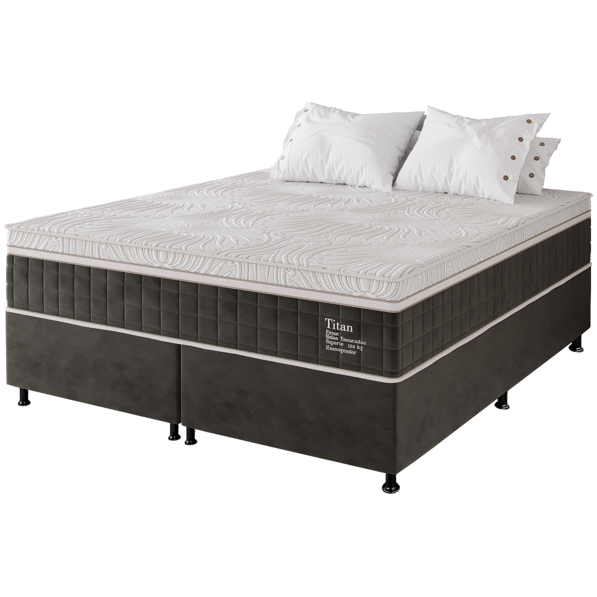 Colchão Queen Terapêutico Massageador Titan D28 + Base Box Simples Corino Branco – VIERO MÓVEIS + BIOSTAR