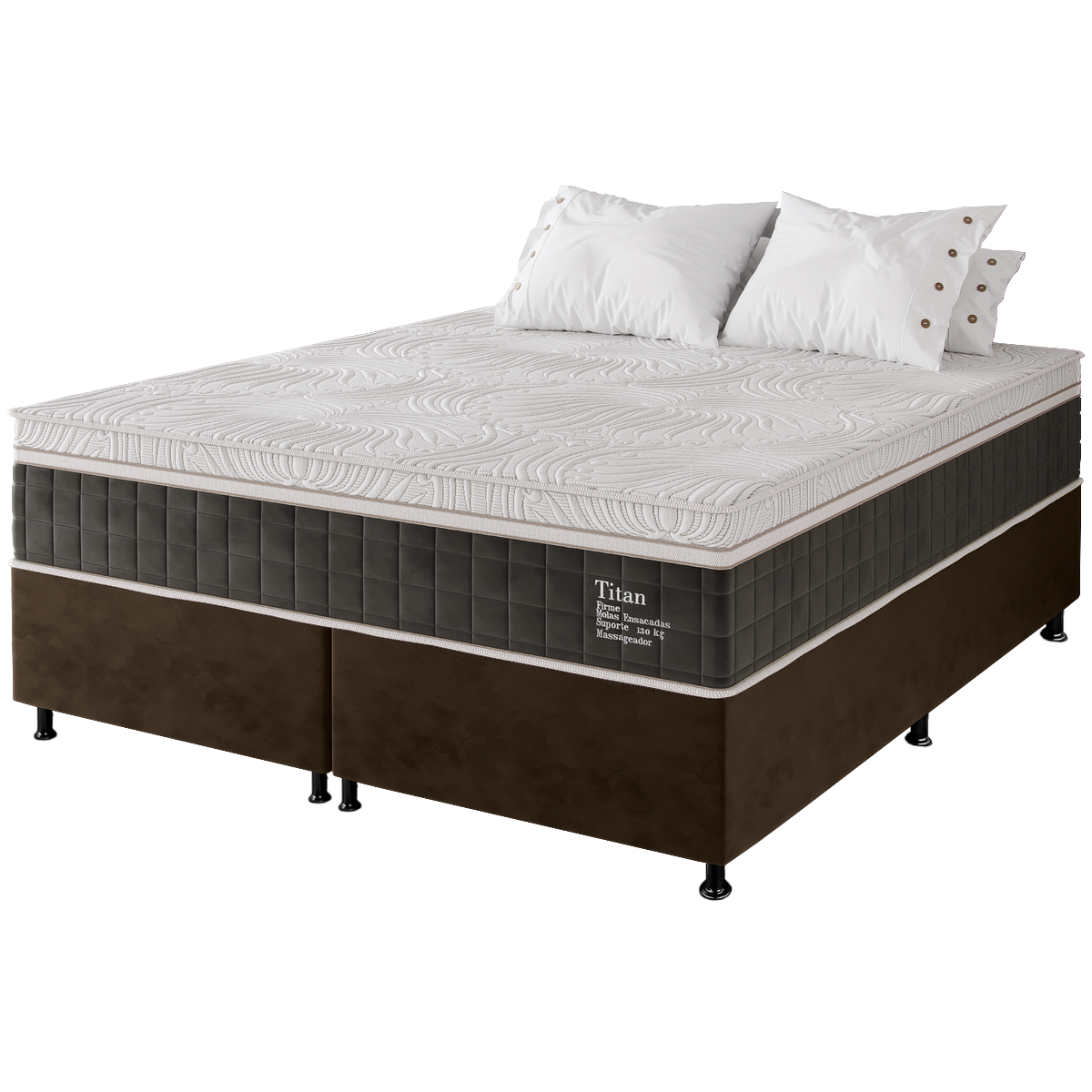 Colchão Queen Massageador Titan/Thor 34 cm D28 Molas Ensacadas + Base Box Simples Corino Marrom – VIERO + BIOSTAR