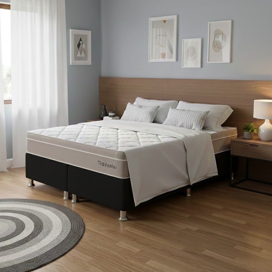 Colchão Queen Tiradentes D28 + Base Box Simples Corino Preto – COLCHOMINAS + ALTO NÍVEL CAMAS E COLCHÕES