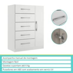 Cômoda 5 Gavetas com Sapateira Corais CO 1523 Branco – RODIAL MÓVEIS