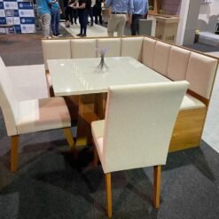 Conjunto Canto Alemão + Mesa Mon/Soberano Mel/Blonde + 2 Cadeiras Milão Mel/Linho Bronze – VIERO MÓVEIS