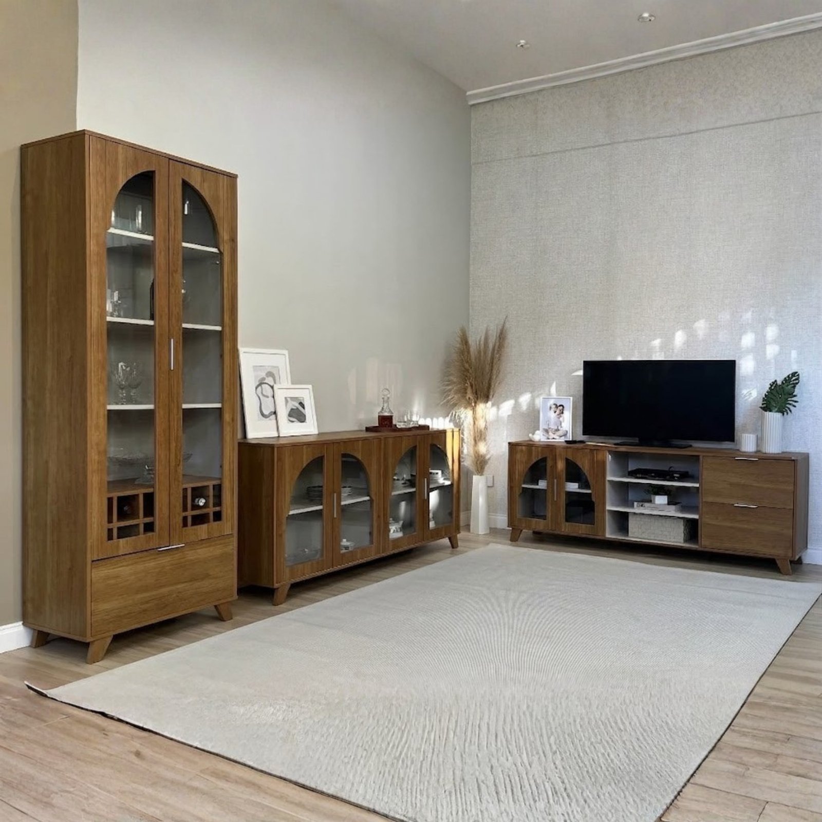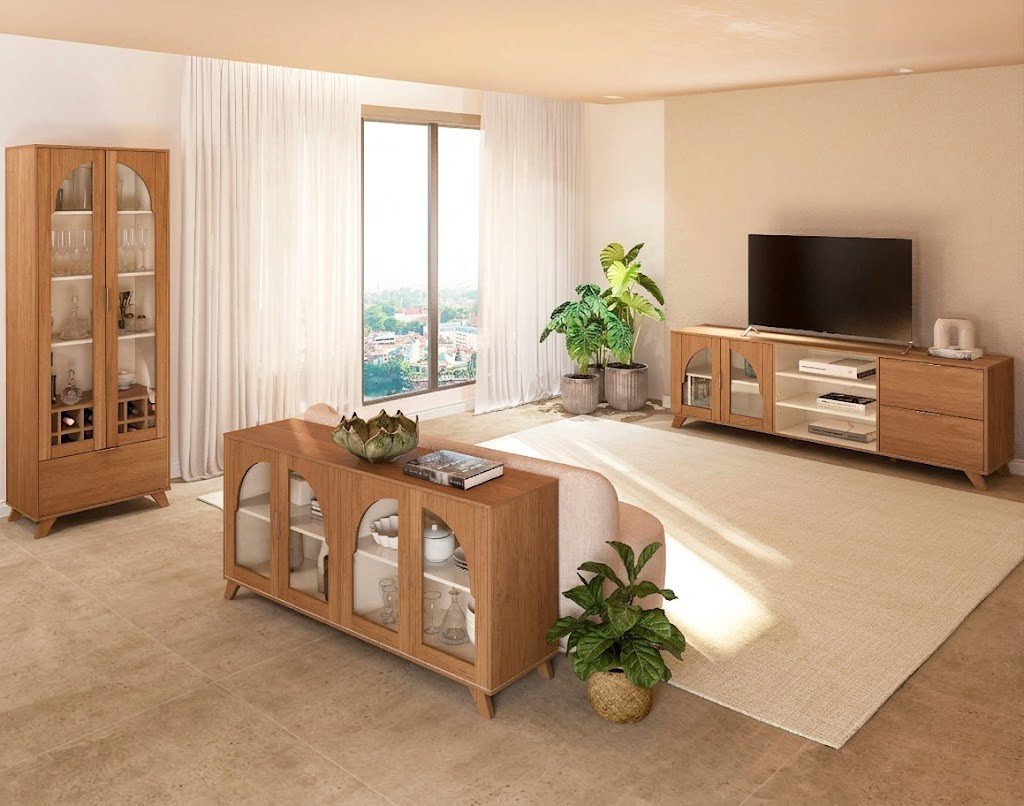 Conjunto Murano (Buffet, Cristaleira e Rack) Cinamomo/Off White – ARTELY