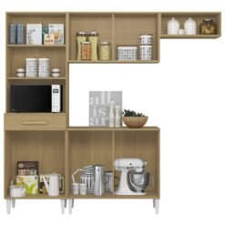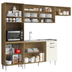Cozinha 3 Peças (S/Balcão) New Valência (Vidro Fumê) Cinamomo/Preto – SALLÊTO