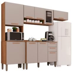 Cozinha Completa New Valência (Vidro fumê) Cinamomo/Off White – SALLÊTO