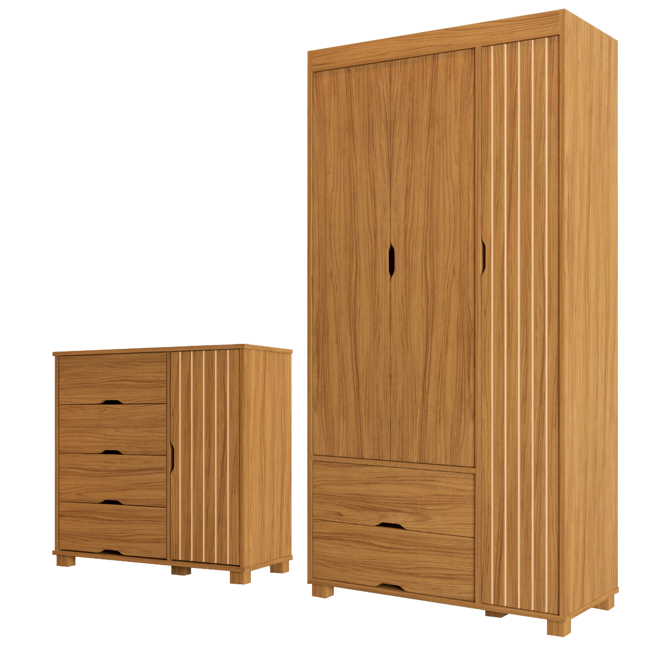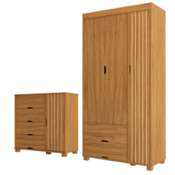 Guarda-Roupa 3 Portas + Cômoda 4 Gavetas com Sapateira Bela Nature – MADEC MÓVEIS