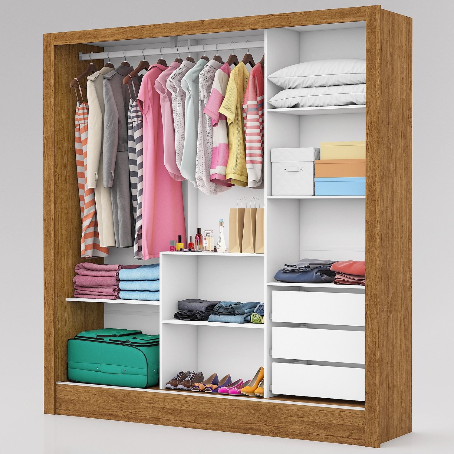 Guarda-Roupa 3 Portas Dubai/Santiago Plus (1 porta espelhada) 1,79 m Cinamomo – CARIOCA MÓVEIS