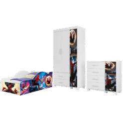 Guarda-Roupa 3 Portas Lívia 0,89 m + Cômoda 4 Gavetas com Sapateira Lívia + Cama Juvenil Carro Homem-Aranha 14 (Menino) – MADEC/VJ MÓVEIS