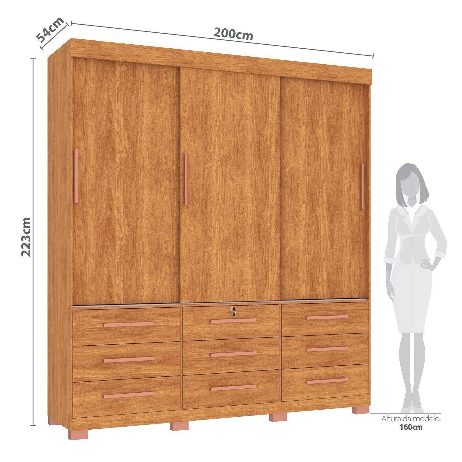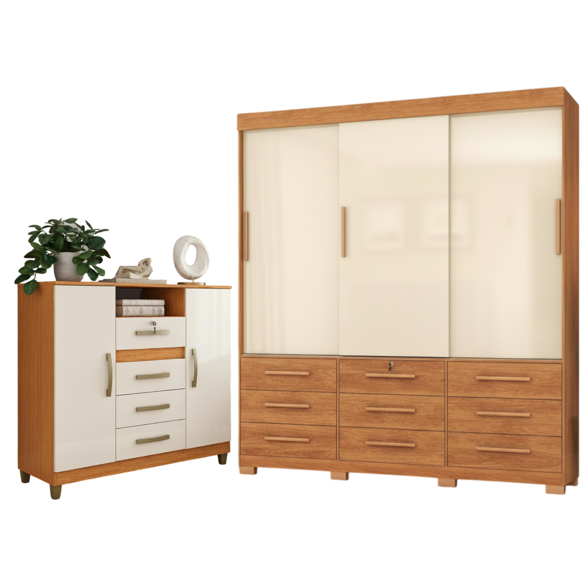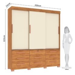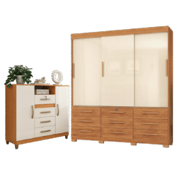 Guarda-Roupa 3 Portas Toronto RP1930 + Cômoda 4 Gavetas 2 Sapateiras Angra CO260 Cinamomo/Off White/Cinamomo – FELLICCI