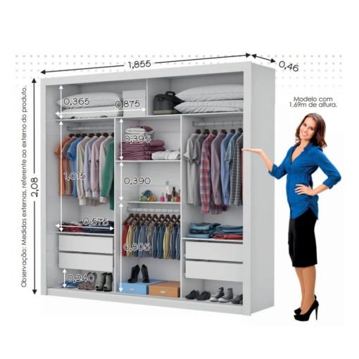 Guarda-Roupa 3 Portas Veneza/Clara/Berlim Plus (1 porta espelhada) 1,855 m branco – CARIOCA MÓVEIS