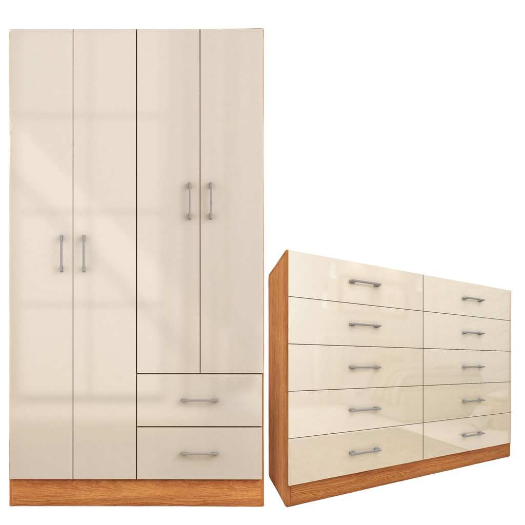 Guarda-Roupa 4 Portas Panamá 4002 + Cômoda 10 Gavetas Caribe Cinamomo/Off White – FELLICCI