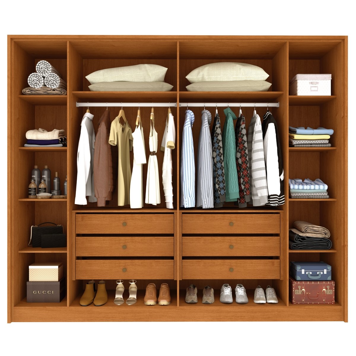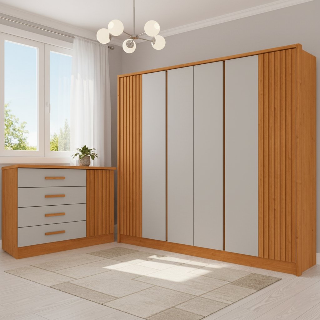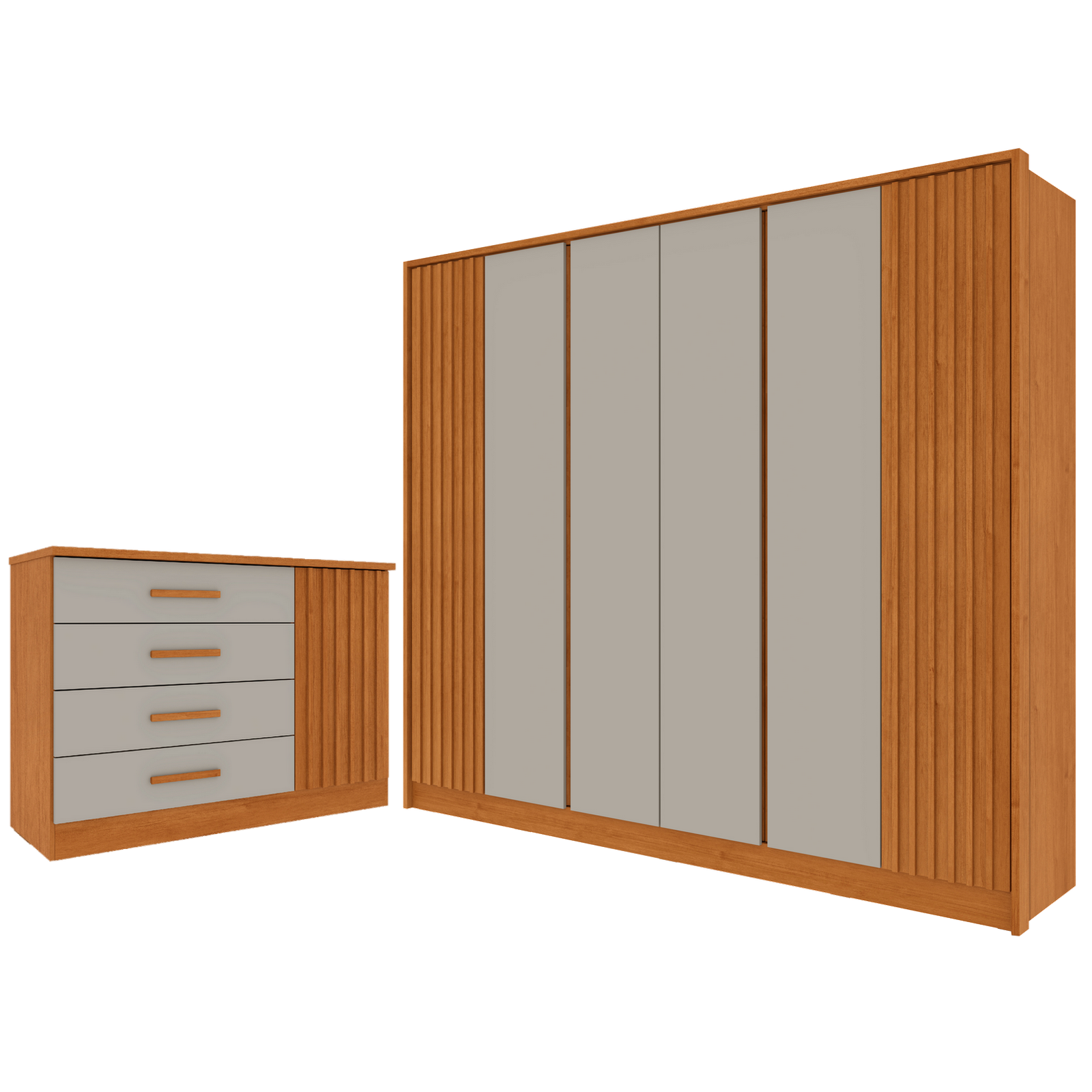 Guarda-Roupa 6 Portas + Cômoda Barcelona/Montserrat Ripado Cinamono/Off White – TCIL