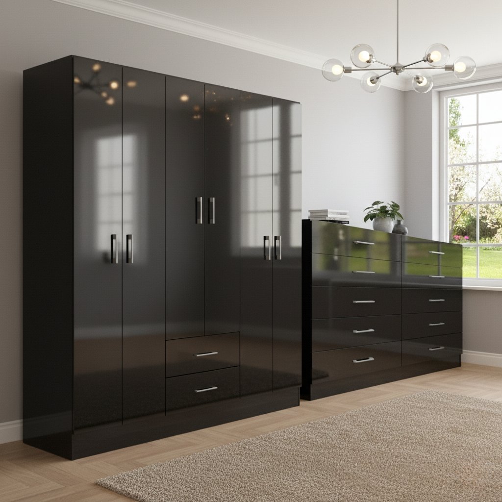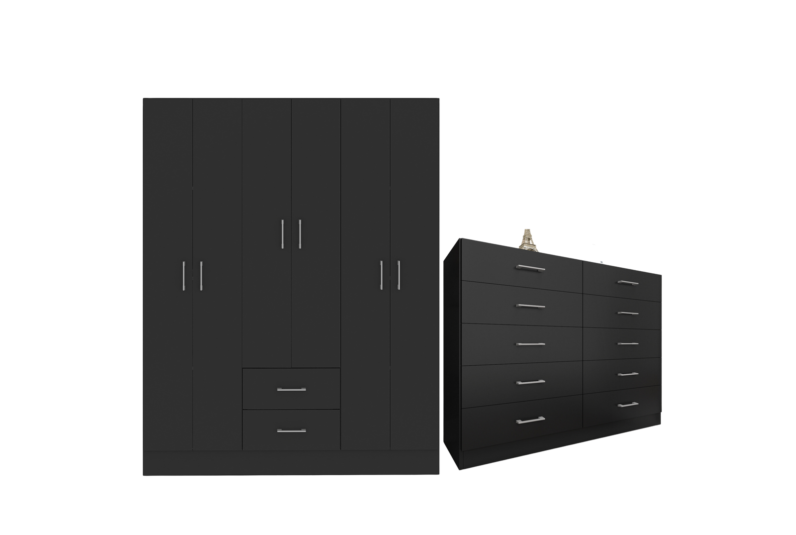 Guarda-Roupa 6 Portas Jamaica 6002 + Cômoda 10 Gavetas Caribe Preto – FELLICCI