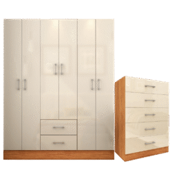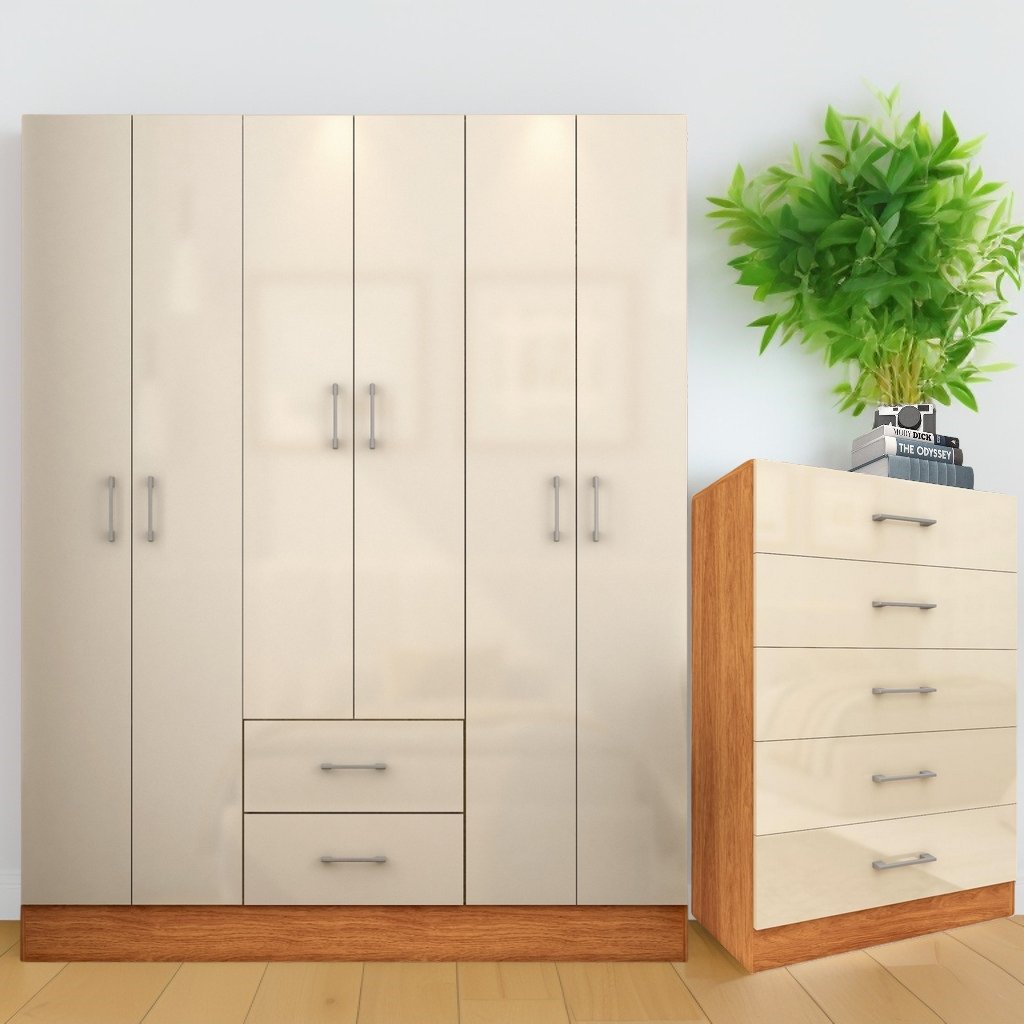 Guarda-Roupa 6 Portas Jamaica 6002 + Cômoda 5 Gavetas Aruba Cinamono/Off White – FELLICCI