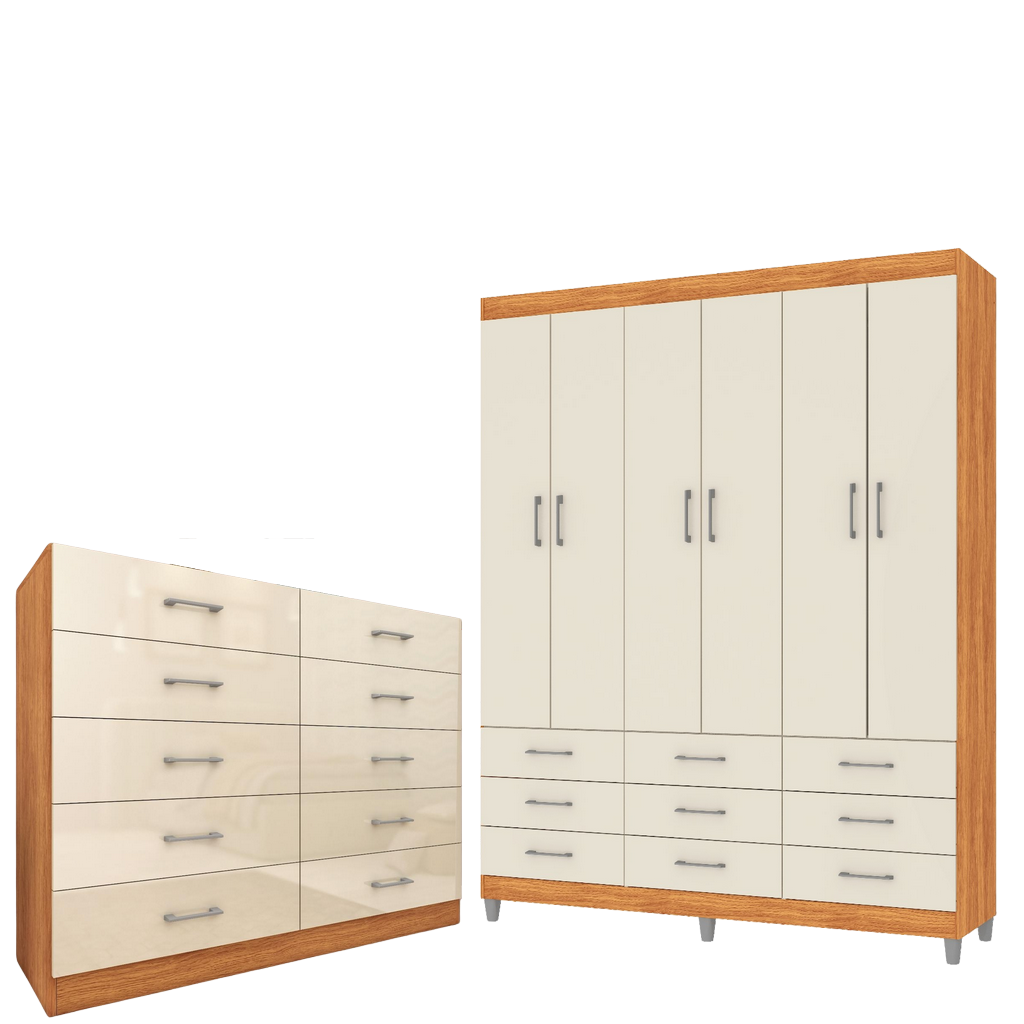 Guarda-Roupa 6 Portas Paraty 3690 + Cômoda 10 Gavetas Caribe Cinamomo/Off White – Fellicci