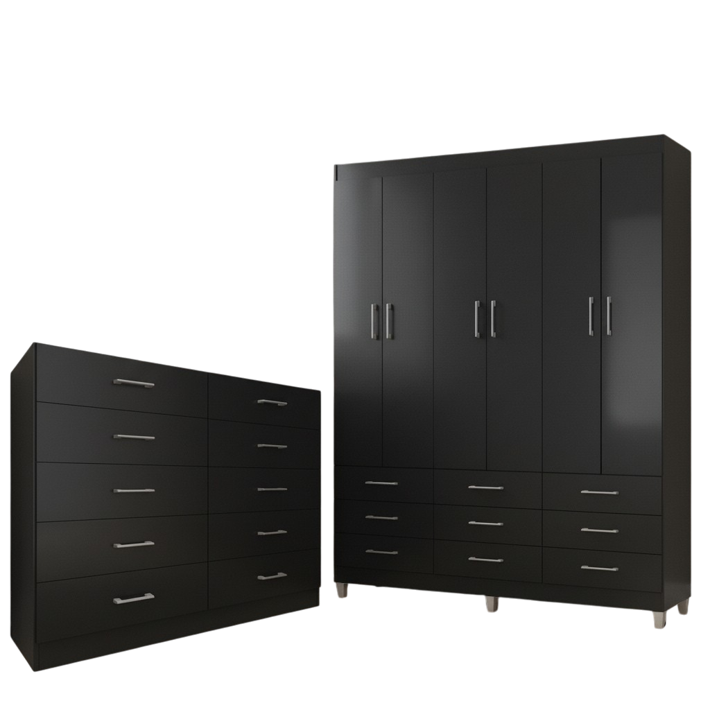 Guarda-Roupa 6 Portas Paraty 3690 + Cômoda 10 Gavetas Caribe Preto – Fellicci