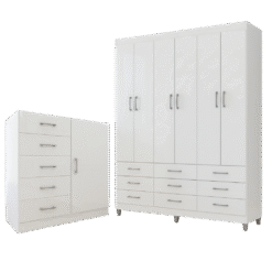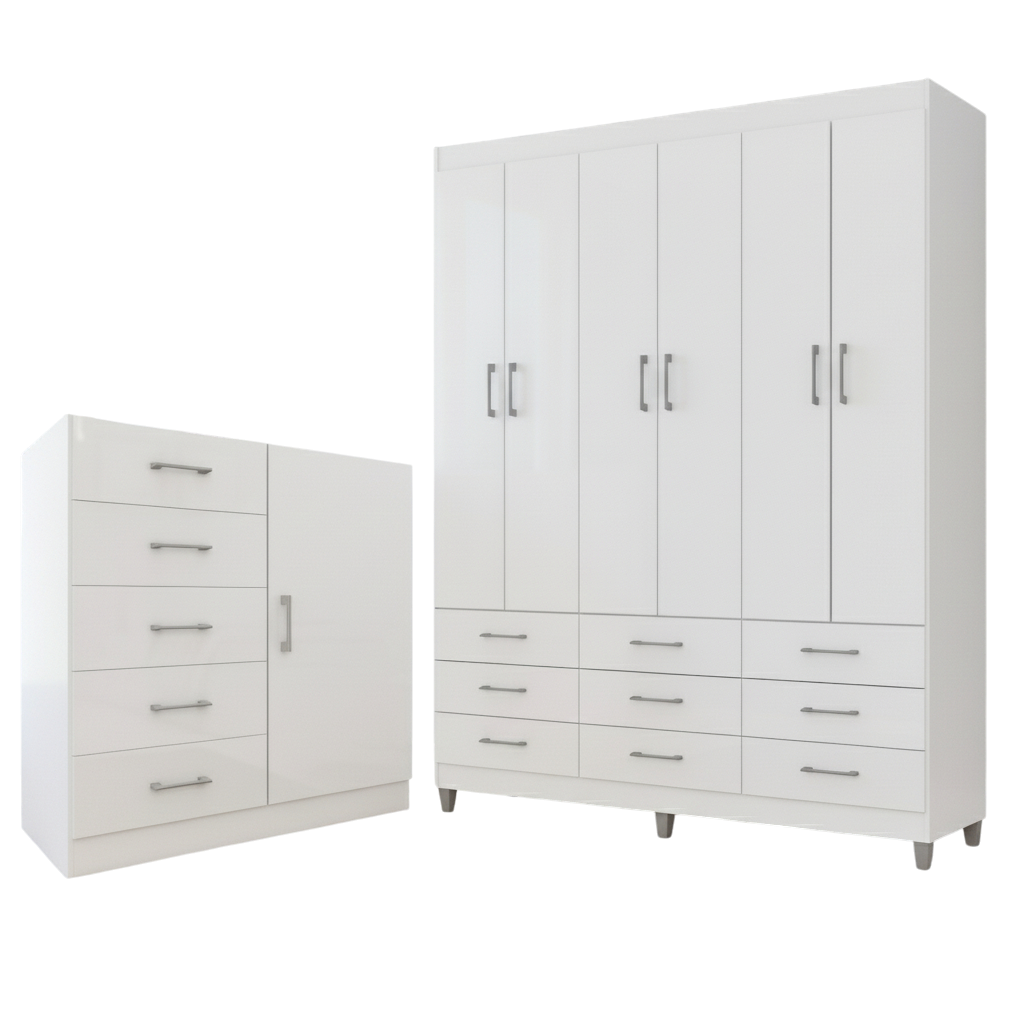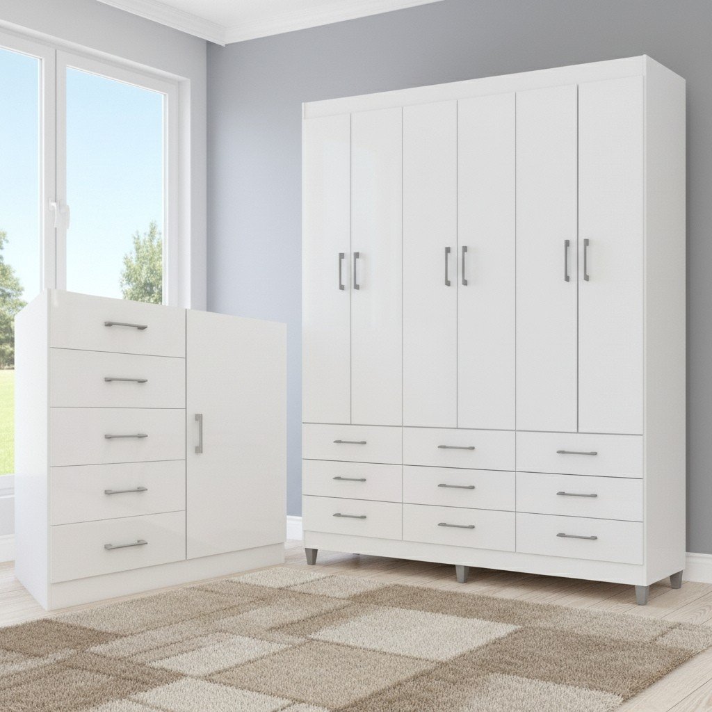 Guarda-Roupa 6 Portas Paraty 3690 + Cômoda 5 Gavetas Sapateira Miami Branco – FELLICCI